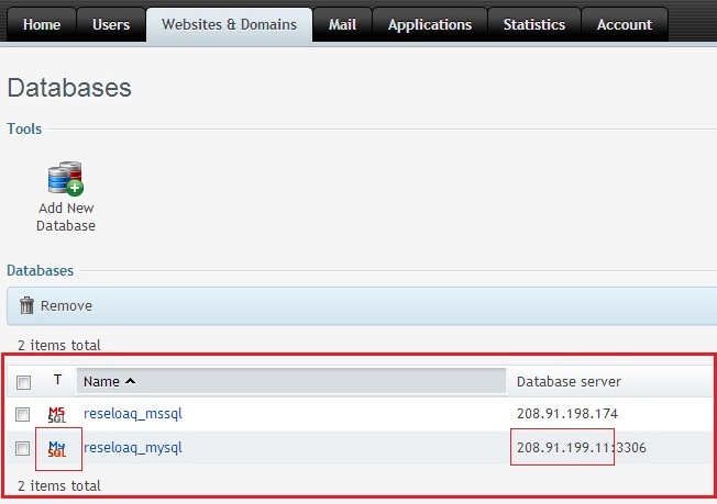 dbname: Specify complete database name including the prefix. For example, reseloaq_mysql.