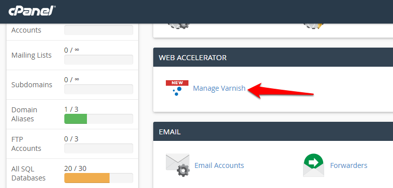 Click on Manage Varnish under the Web Accelerator section.
